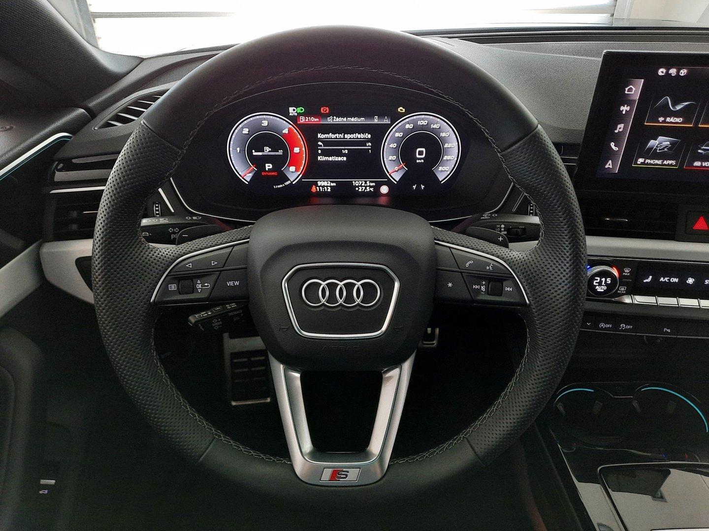 První majitel, Servisní knížka, Hlavní světlomety Audi Matrix LED s přídavnými laserovými dálkovými světly, Kožený sportovní multifunkční volant s možností řazení, Vyhřívání předních sedadel s oddělenou regulací, Bezpečnostní vnitřní zrcátko s autom. zatmavováním, Asistent pro vedení v jízdním pruhu, Pomocné parkovací zařízení vpředu a vzadu, Asistent při změně jízdního pruhu, Automatické udržování vzdálenosti (s funkcí follow to stop) a omezovačem rychlosti, Zadní parkovací kamera, AUDI DRIVE SELECT, El. nastavitelná přední sedadla, Servozavírání víka zavazadlového prostoru, Boční airbag vpředu s hlavovým airbagem, Digitální příjem rádia, Business paket, Přední sedadla s masážní funkcí, Audi virtual cockpit, Sportovní sedadla vpředu, Audi smartphone interface, Audi phone box, 3 zónová automatická klimatizace, Pro bližší informace neváhejte kontaktovat prodejce.