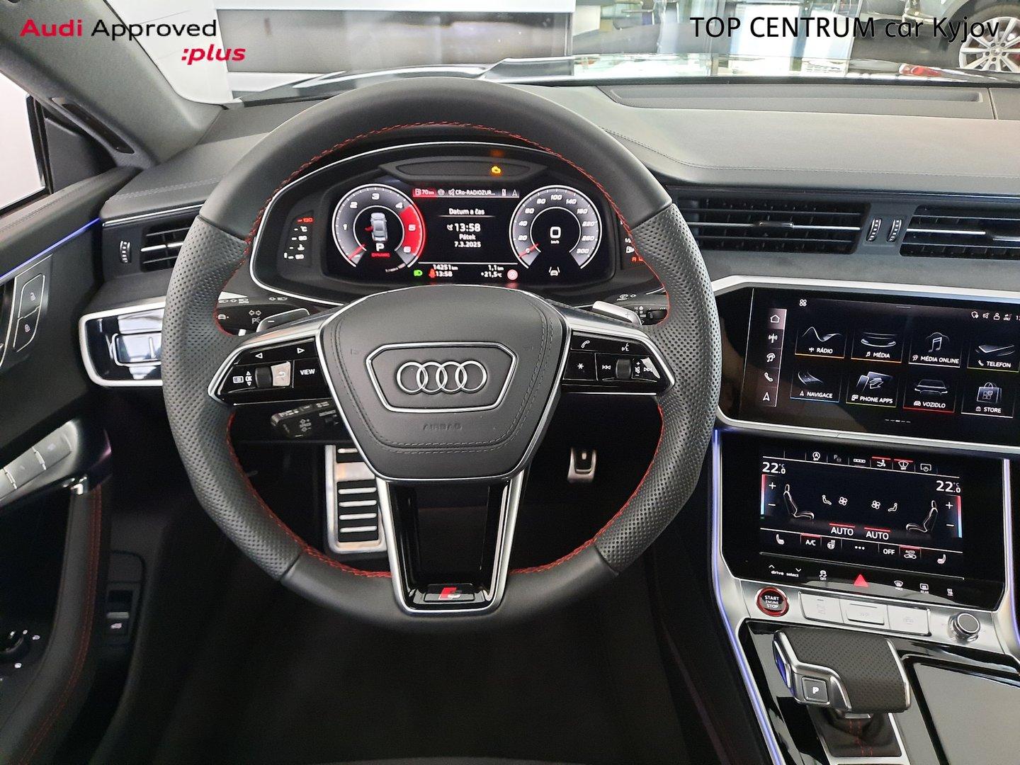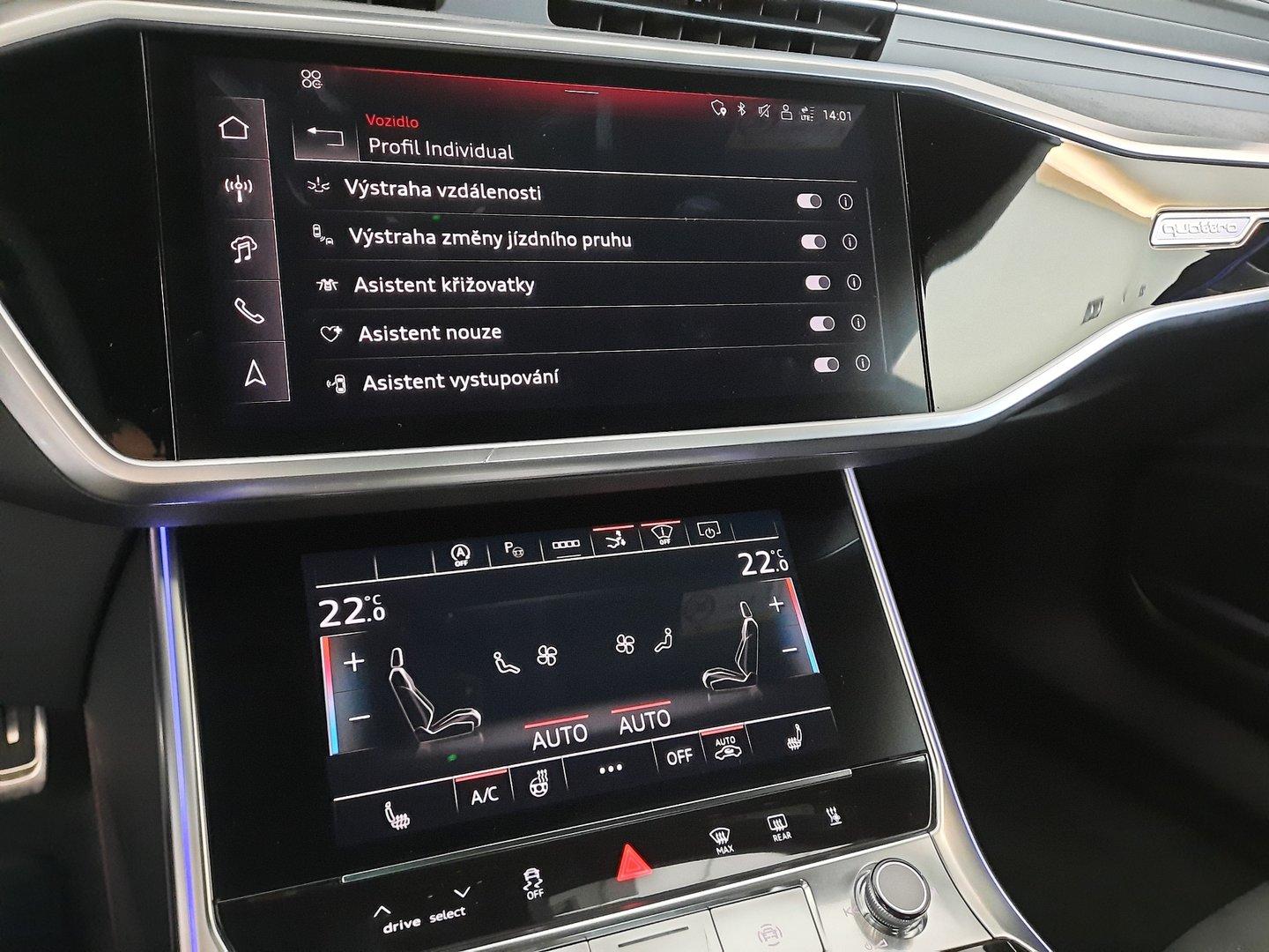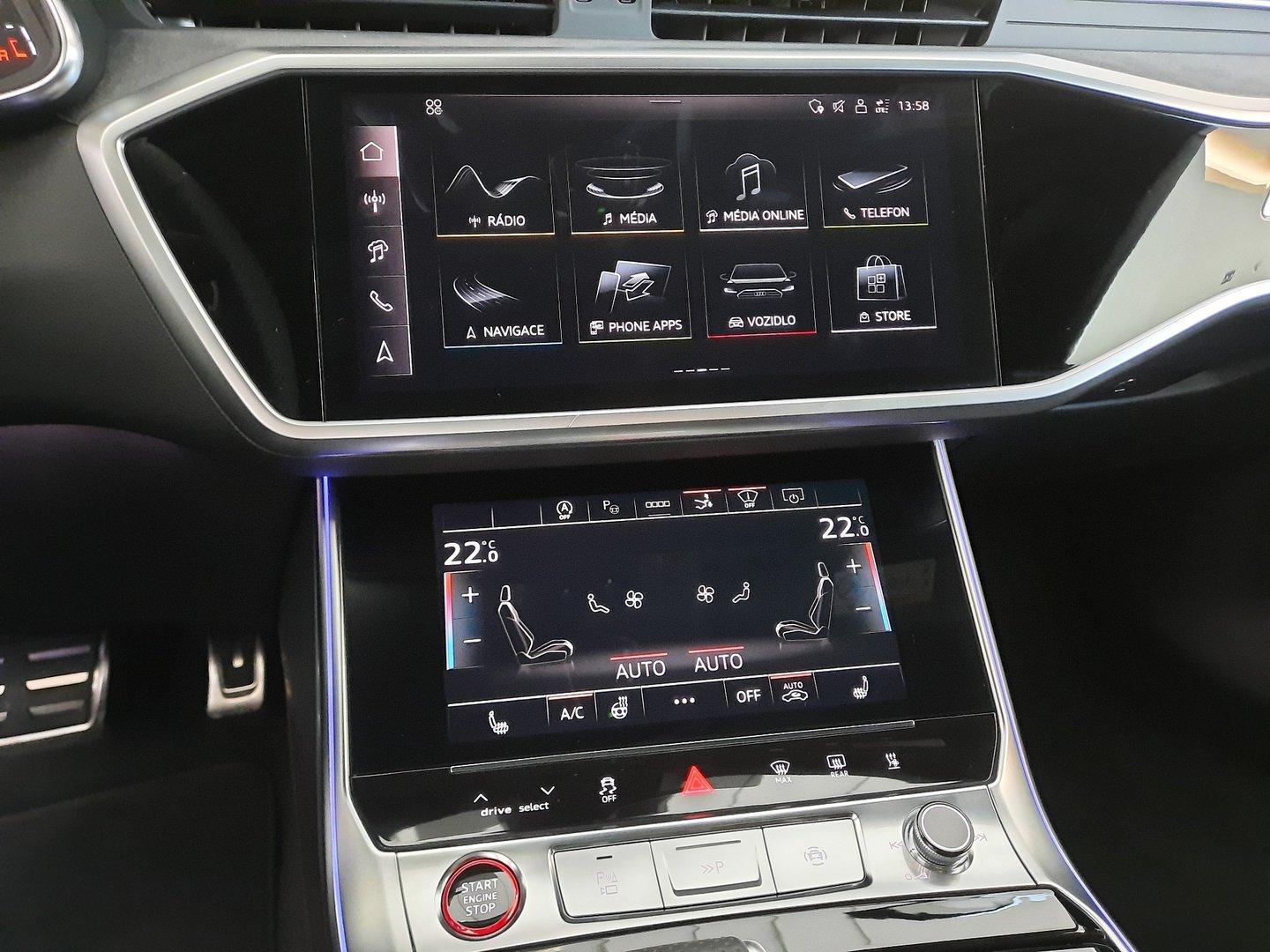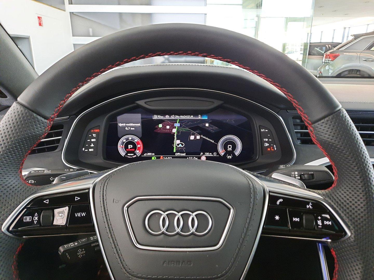 Nové v ČR, První majitel, V záruce do 2029-09-12/150 000km. 360° kamery, Světlomety HD Matrix LED s Audi laser light, Head-up displej, Bang & Olufsen Premium Sound System s 3D, Servomechanické dovírání dveří, Dynamické řízení všech kol, Adaptivní pneumatický podvozek s volbou jízdních režimů, Sportovní sedadla vpředu, el. nastavitelná, Vyhřívání předních a zadních sedadel, Multifunkční sportovní kožený vyhřívaný s Tiptronic, Třízónová automatická klimatizace, Centrální zamykání "Keyless-Entry", Ambientní a konturní osvětlení interiéru, Audi Phone Box, Komfortní telefonování s LTE, Bezdrátové nabíjení mobilního telefonu, Nezávislé topení/ventilace s dálkovým ovládáním, Paket černé optiky plus, Tažné zařízení, Špičkový infotainment Premium, Výstražné zařízení proti krádeži, záložní siréna a ochrana proti odtažení, Červeně lakované brzdové třmeny, Paket Asistenčních systémů, Nasávání čerstvého vzduchu a ionizátor. Jedná se o předváděcí vůz Top Centrum car pro dostupnost prosím kont